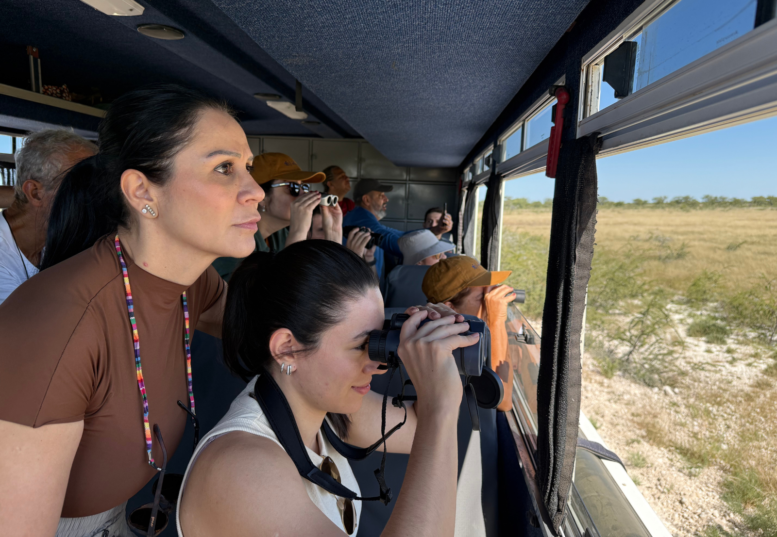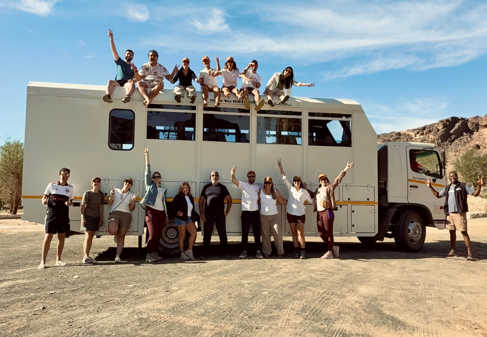 O caminhão não é hospedagem. É o meio que permite atravessar a Namíbia por terra, vendo o que não se vê de avião. É no caminho que os animais aparecem, as paisagens mudam e o país se revela.